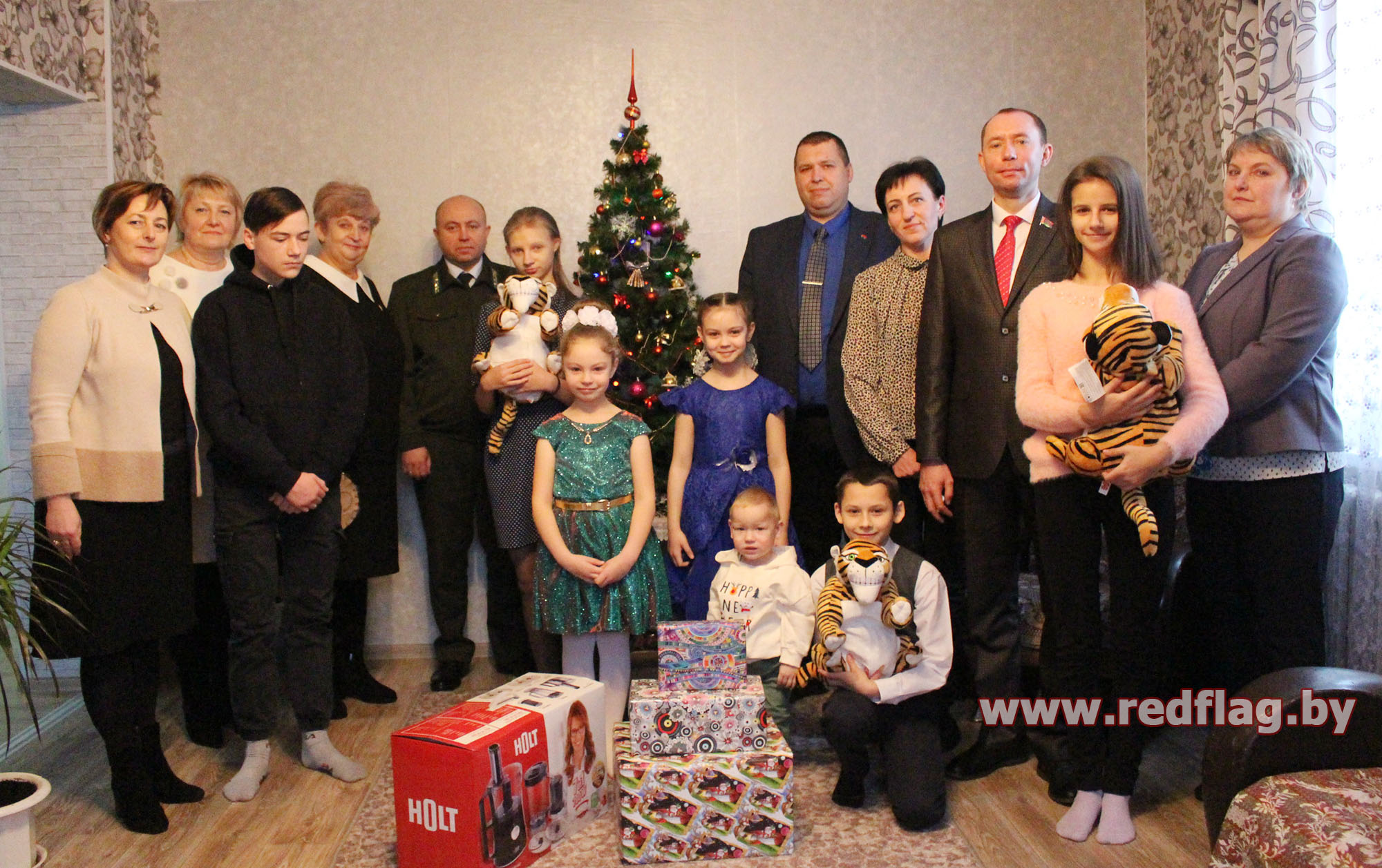 В понедельник председатель районного исполнительного комитета А.Л. Трушкин, председатель районного Совета депутатов, председатель РО РОО «Белая Русь» А.А. Гоман, депутат Палаты представителей Национального собрания Республики Беларусь С.А. Сыранков, заместитель председателя райисполкома Е.И. Чаюкова, начальник отдела по образованию, спорту и туризму райисполкома Н.А. Синкевич с подарками и поздравлениями навестили детские дома семейного типа Хлыстовых и Алепко. В радушном доме Хлыстовых также встречали и своих шефов, «Краснопольский лесхоз» в лице директора учреждения, депутата районного Совета депутатов С.А. Жебина и заместителя директора по идеологической работе И.М. Кардаш.