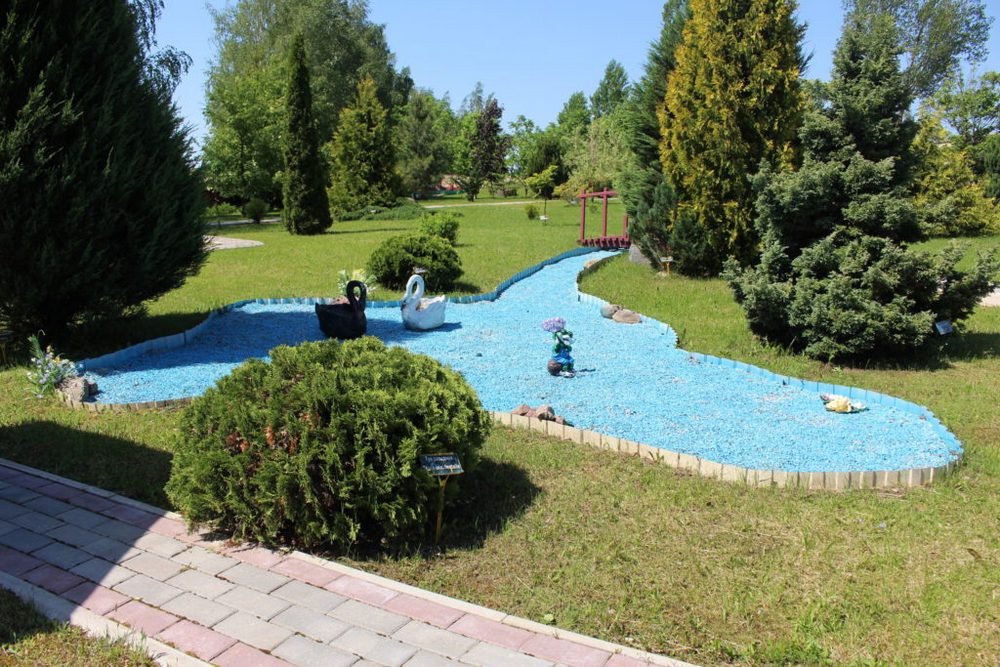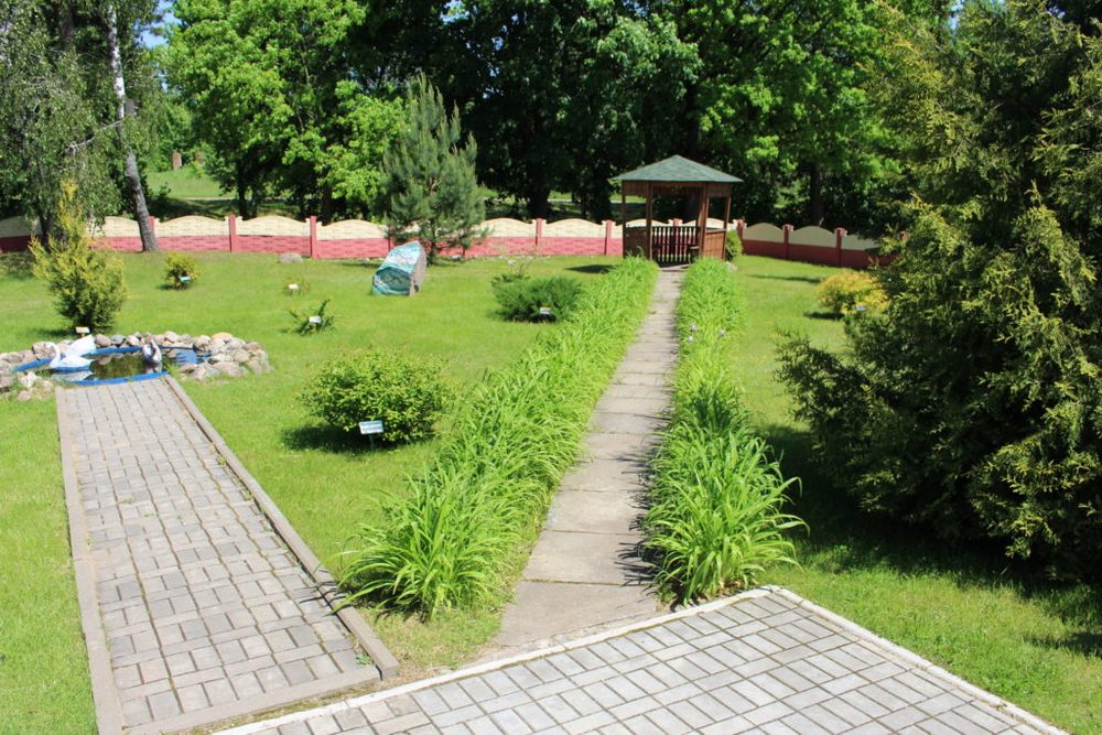 Порядком и ухоженностью радует территория административного здания. В её благоустройство, как отметила заместитель директора «Краснопольский лесхоз» по идеологической работе И.М. Кардаш, коллективом вложено немало сил и средств. Гордость учреждения – дендропарк с множеством декоративных кустарников и деревьев (всех 51 вид). Он был заложен в 2004 году. На сегодняшний день в нем произрастает 28 экземпляров хвойных деревьев, 186 хвойных кустарников, 46 лиственных деревьев и 20 лиственных кустарников. Площадь дендропарка составляет 0,32 га. Если смотреть на него с высоты, то можно увидеть, что он имеет форму ели. А посетители узнают об этом, познакомившись с паспортом дендропарка.