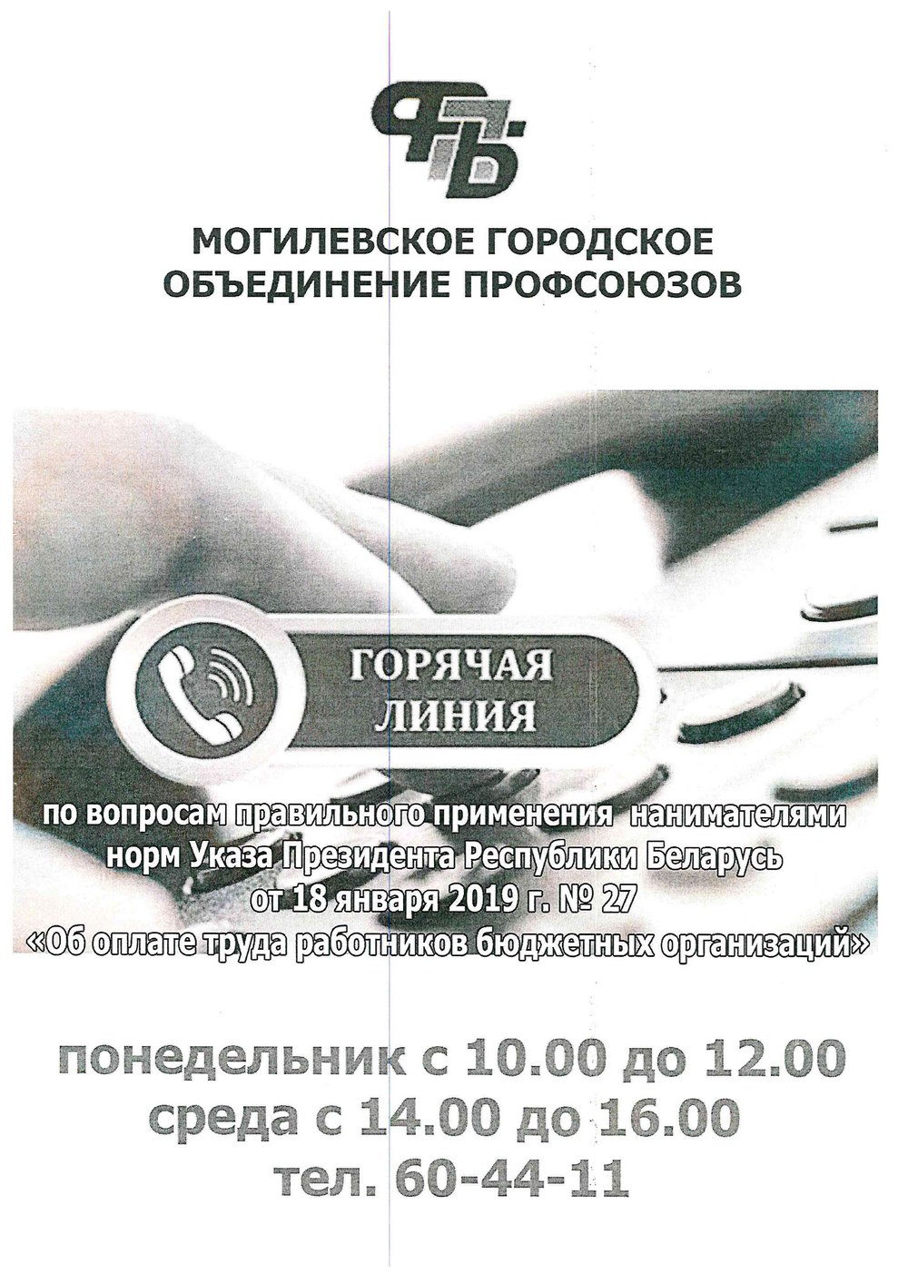 ГОРЯЧАЯ ЛИНИЯ ( Могилевское городское объединение профсоюзов)