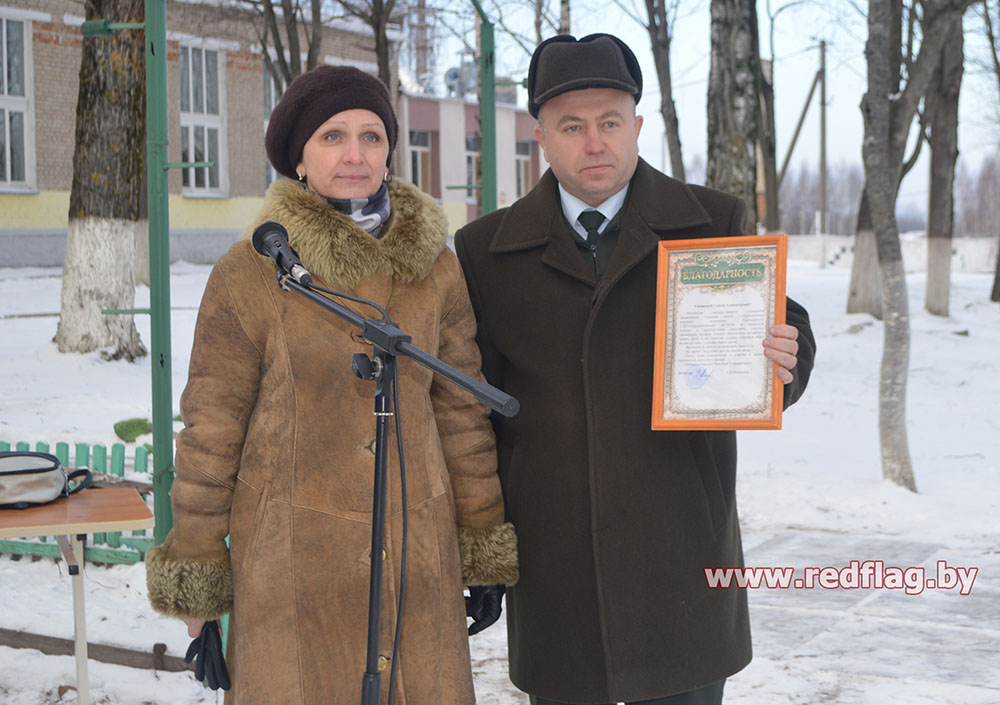 Добрые слова в адрес гостей прозвучали от директора ГУО «Средняя школа г.п. Краснополье» Е.В. Москалевой, которая от имени коллектива школы выразила искреннюю благодарность Краснопольскому лесхозу за подарок – комплекс уличных тренажеров, который они преподнесли учреждению образования в канун Нового года.