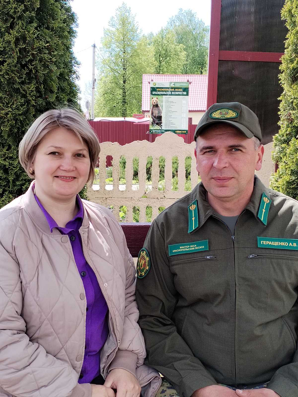 Семья Геращенко Марии и Александра, в браке уже 19 лет. Вместе они и на работе, и дома на протяжении 12 лет. Первым в Краснопольский лесхоз трудоустроился глава семьи в Нивицкое опытно-производственное лесничество – бухгалтером в 2008 году, затем перевелся мастером леса, а на его место пришла на должность бухгалтера Мария в 2013 году. Оба специалиста пользуются уважением в коллективе лесничества и лесхоза. К слову сказать, в этом году Мария была награждена Грамотой Могилевского государственного производственного лесохозяйственного объединения. Александр, на несколько лет раньше Почетной Грамотой Могилевского государственного производственного лесохозяйственного объединения.